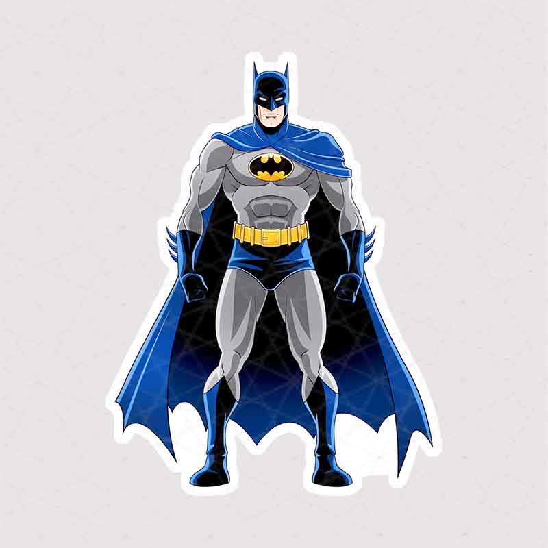 استیکر بتمن با شنل آبی طرح گرافیکی ، را میتوانید در سایز های مختلف و 3 مدل کاغذی – پارچه ای و ژله ای از پچول خریداری کنید