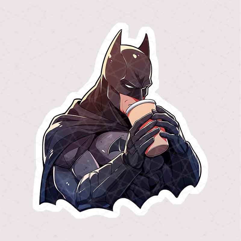 استیکر بتمن در حال قهوه خوردن ، را میتوانید در سایز های مختلف و 3 مدل کاغذی – پارچه ای و ژله ای از پچول خریداری کنید