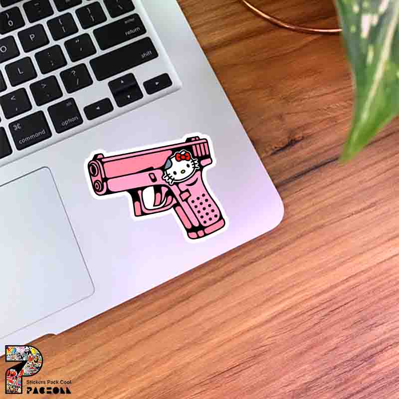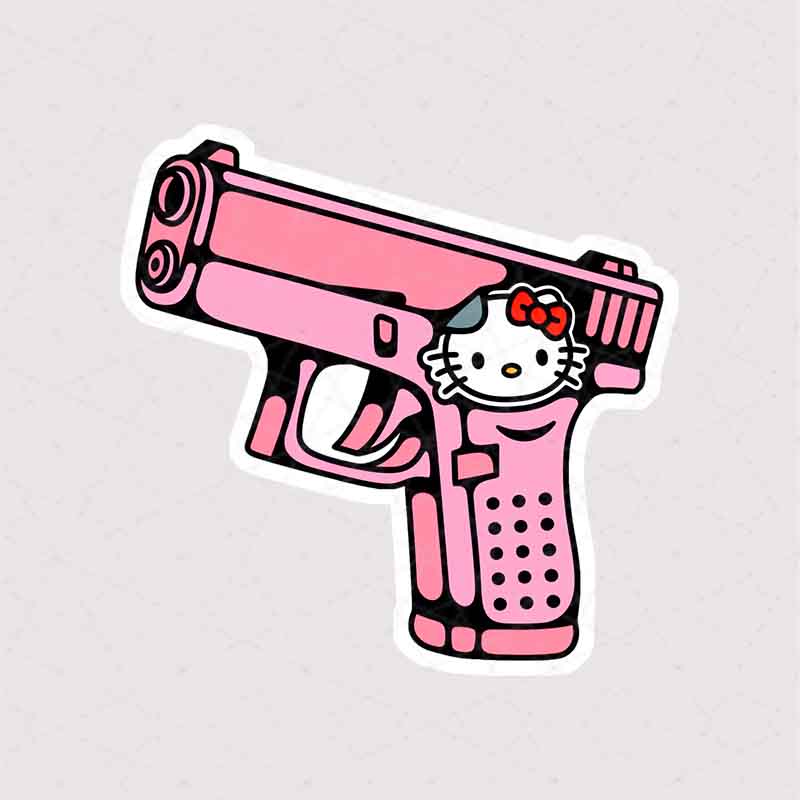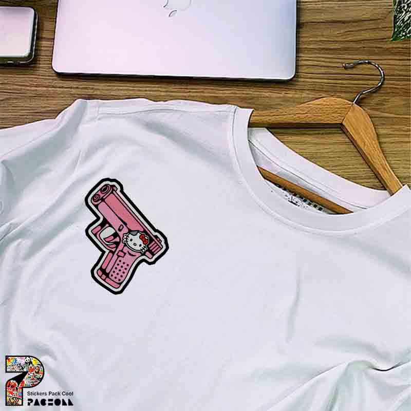 استیکر تفنگ صورتی هلو کیتی ، را میتوانید در سایز های مختلف و 3 مدل کاغذی – پارچه ای و ژله ای از پچول خریداری کنید