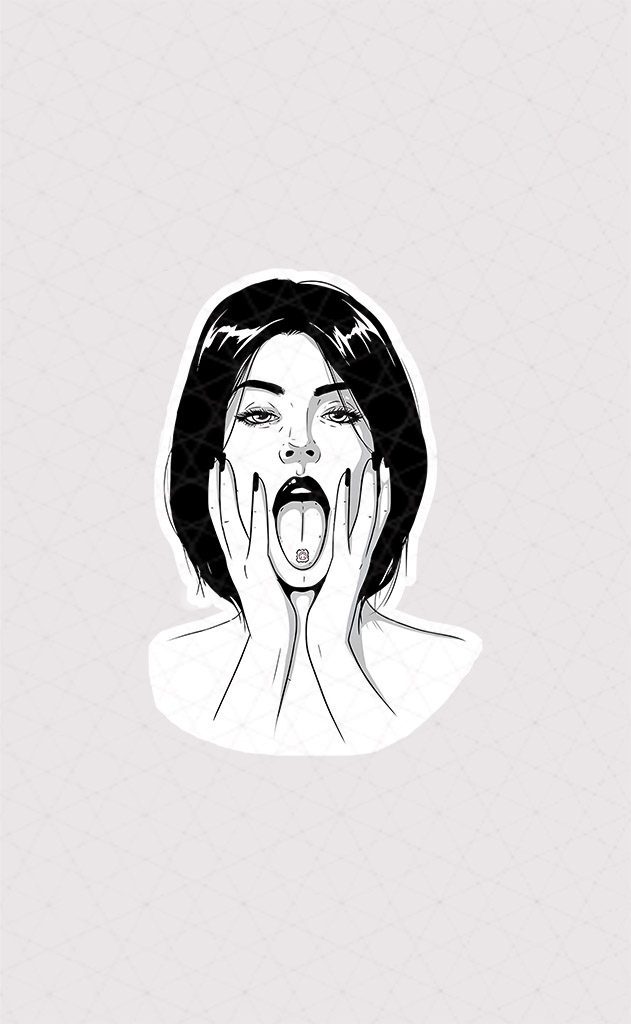استیکر دختر طرح برچسب بر روی زبان به رنگ سیاه و سفید ، را میتوانید در سایز های مختلف و 3 مدل کاغذی – پارچه ای و ژله ای از پچول خریداری کنید