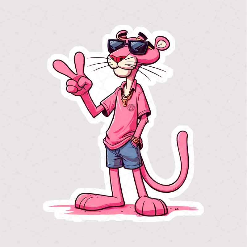 توضیحات استیکر: این استیکر جذاب، پلنگ صورتی محبوب را در یک حالت خونسرد و شیک به تصویر میکشد. او با عینک آفتابی تیره، یک گردنبند طلایی براق و یک دست در جیب شلوارک جین خود، ژست صلح گرفته است. رنگهای زنده و طراحی پویای این استیکر، حس شادی و آرامش را منتقل میکند و برای طرفداران این شخصیت دوستداشتنی یک انتخاب بینظیر است.