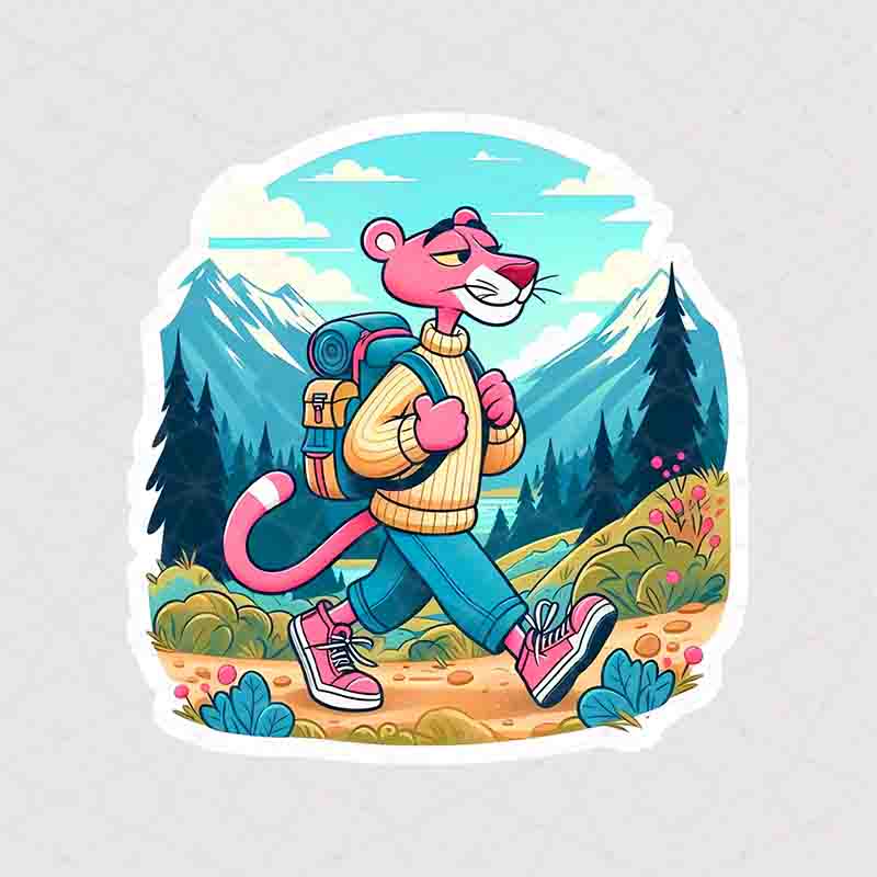 توضیحات استیکر: این استیکر جذاب، پلنگ صورتی دوستداشتنی را در حال کوهنوردی نشان میدهد. او یک کولهپشتی بزرگ به رنگهای آبی و صورتی به همراه دارد و با یک ژاکت کرمرنگ و شلوار آبی روشن و کفشهای کتانی صورتی در یک مسیر کوهستانی پر از گل و گیاه قدم میزند. در پسزمینه، کوههای بلند پوشیده از برف و آسمان آبی با ابرهای پراکنده دیده میشود که حس ماجراجویی و طبیعتگردی را القا میکند. این استیکر با طراحی شاد و رنگهای زنده، برای علاقهمندان به پلنگ صورتی و طبیعت بسیار مناسب است و میتواند به وسایل شما جلوهای منحصر به فرد ببخشد.