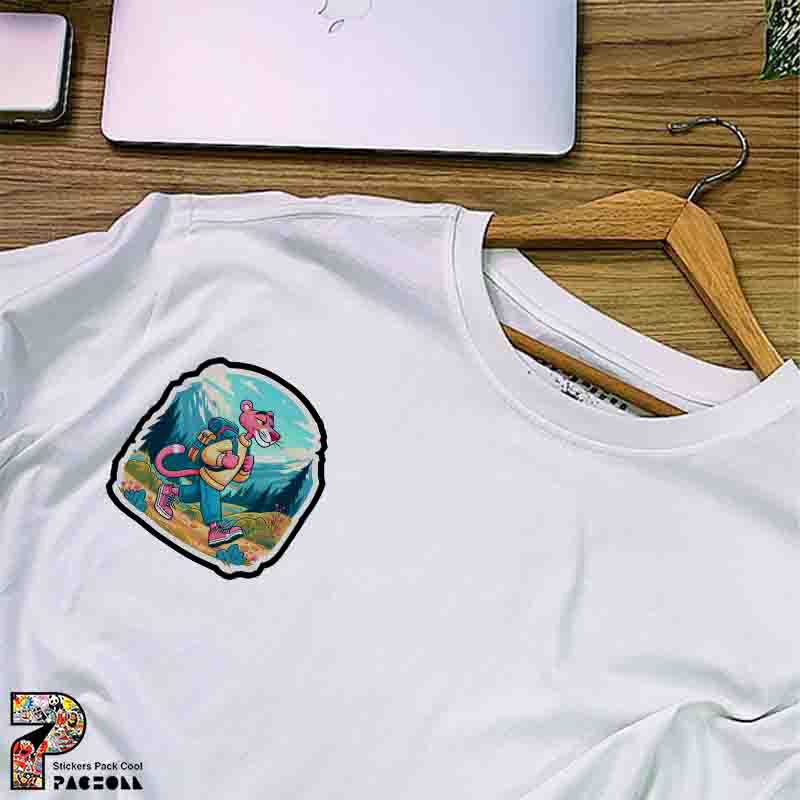 استیکر پلنگ صورتی در حال کوهنوردی ، را میتوانید در سایز های مختلف و 3 مدل کاغذی – پارچه ای و ژله ای از پچول خریداری کنید