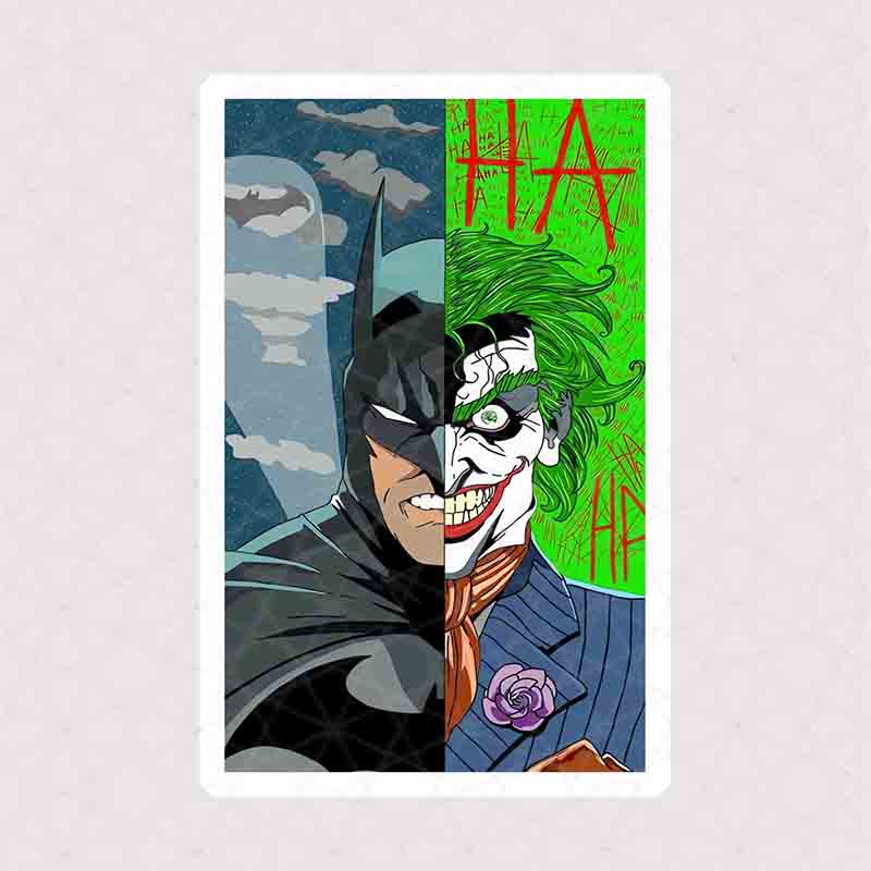استیکر چهره بتمن و جوکر در کنار هم ، را میتوانید در سایز های مختلف و 3 مدل کاغذی – پارچه ای و ژله ای از پچول خریداری کنید