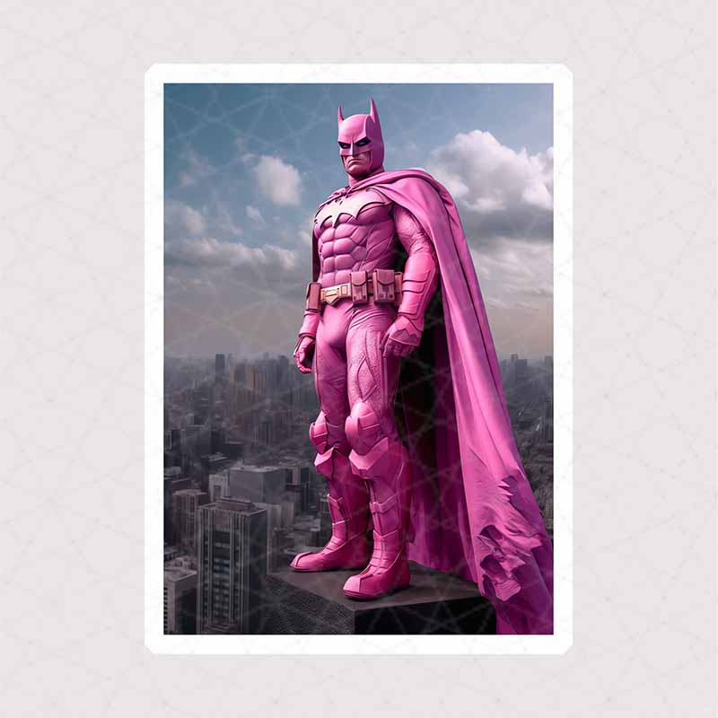 استیکر بتمن با لباس صورتی ، را میتوانید در سایز های مختلف و 3 مدل کاغذی – پارچه ای و ژله ای از پچول خریداری کنید