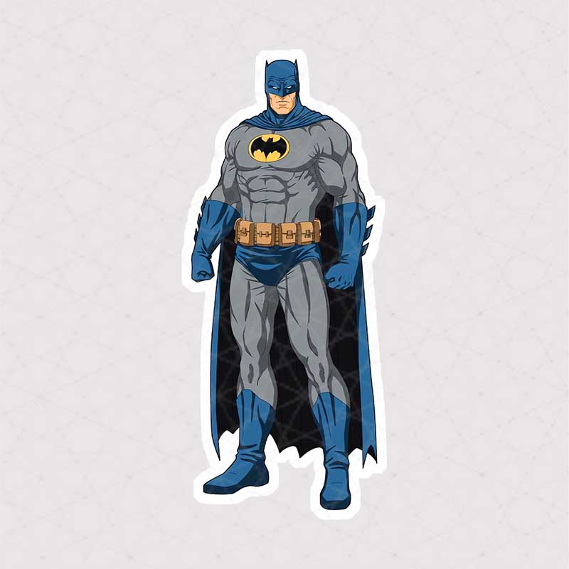 استیکر بتمن در لباس آبی – طرح گرافیکی ، را میتوانید در سایز های مختلف و 3 مدل کاغذی – پارچه ای و ژله ای از پچول خریداری کنید