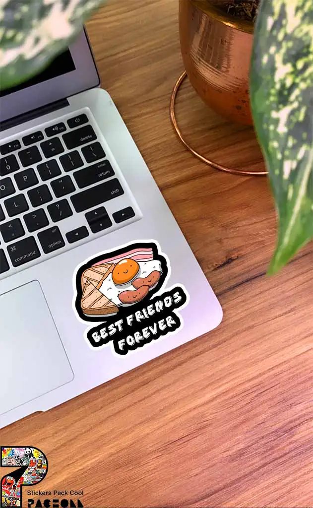 استیکر سوسیس تخم مرغ همراه با متن Best Friends forever ، را میتوانید در سایز های مختلف و 3 مدل کاغذی – پارچه ای و ژله ای از پچول خریداری کنید