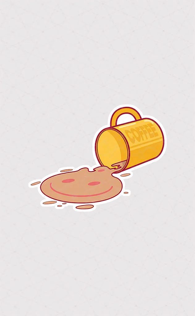 استیکر لیوان قهوه ریخته شده بر روی زمین طرح فیک اسمایل ، را میتوانید در سایز های مختلف و 3 مدل کاغذی – پارچه ای و ژله ای از پچول خریداری کنید