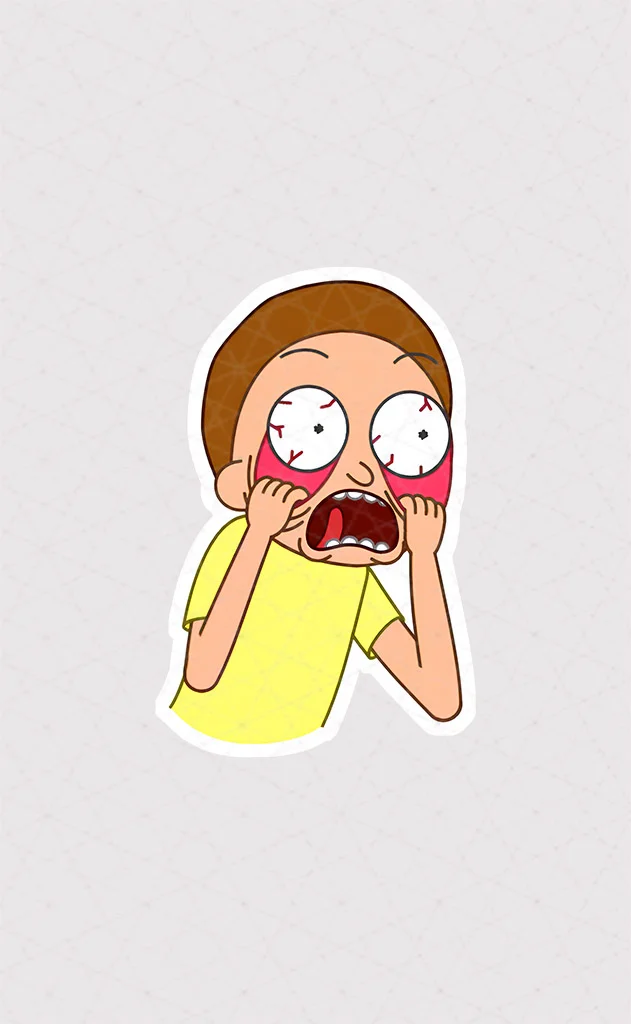 استیکر مورتی اسمیت با چشمانی باز به رنگ قرمز از مجموعه انیمیشن ریک و مورتی ، را میتوانید در سایز های مختلف و 3 مدل کاغذی – پارچه ای و ژله ای از پچول خریداری کنید