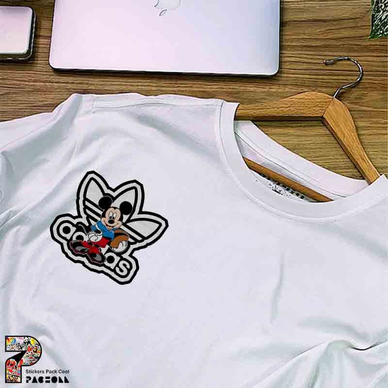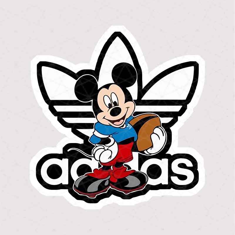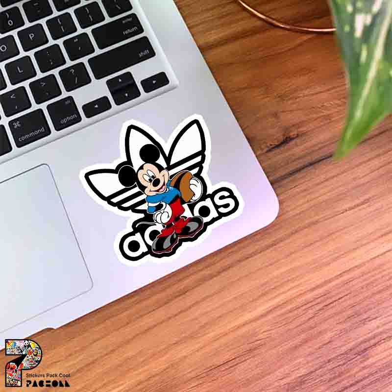 استیکر میکی موس آدیداس با توپ راگبی ، را میتوانید در سایز های مختلف و 3 مدل کاغذی – پارچه ای و ژله ای از پچول خریداری کنید